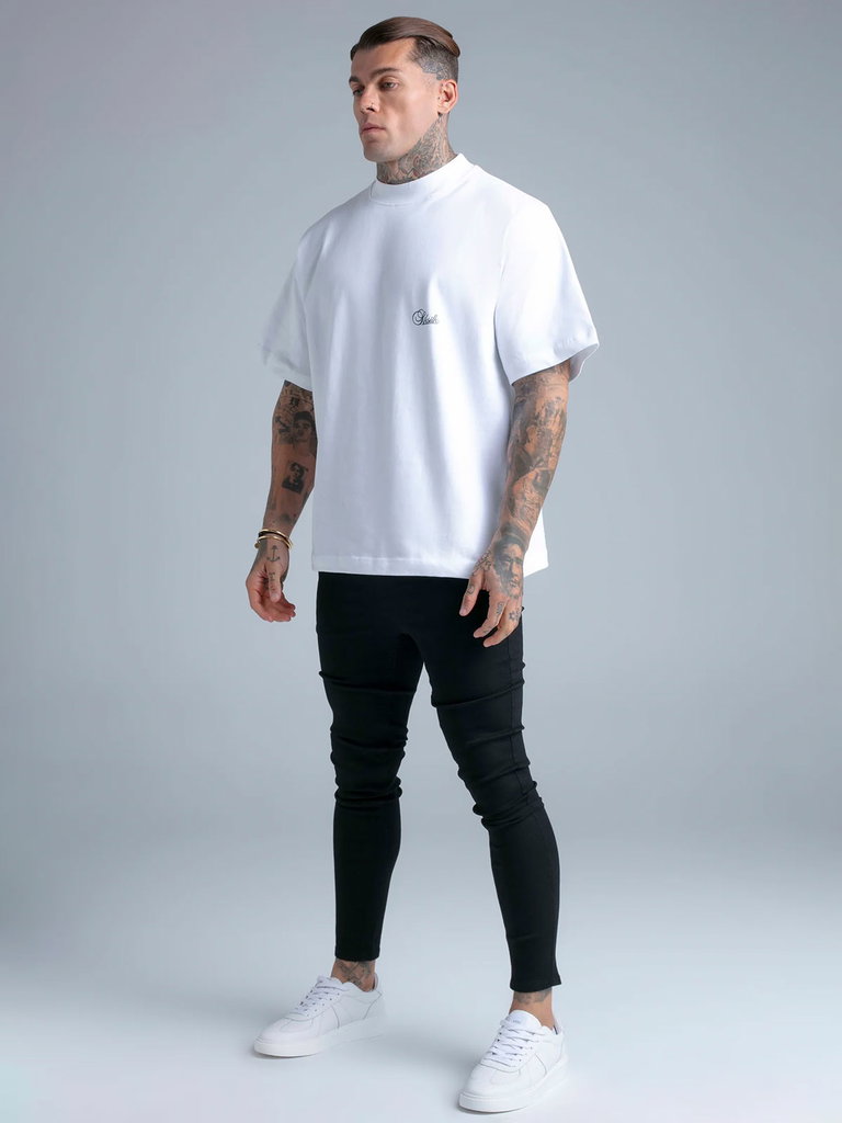 Svarta jeans från Sik Silk. Med stretch i materialet. Från Sik Silks Core-kollektion. Bomull med fokus på hållbarhet. Tajt modell med viss rymd i gren för tapered känsla. (183cm/84kg strl M)
